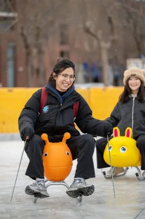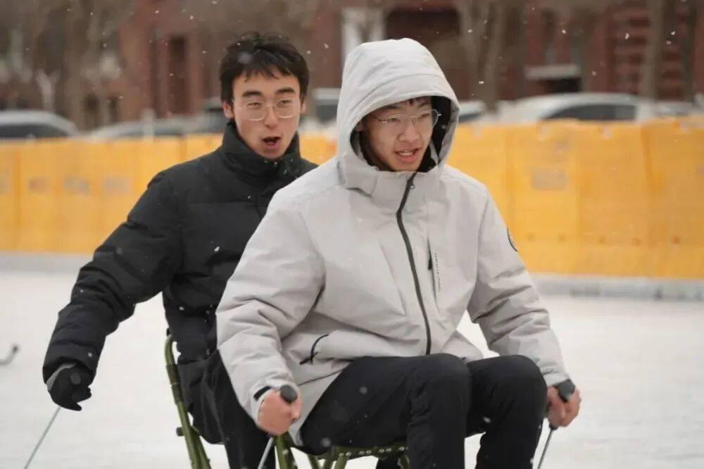 “校外的河面还没有彻底结冰,校园却给咱们浇出了一个滑冰场,太惊喜了!这儿就像一个解压乐土,在备考期末考试的空隙,约上几位老友坐着小滑冰车玩上一瞬间,还能结识新的朋友,大大缓解了学业和科研压力,拉满了高兴值,感触到了校园满满的宠爱!”2025级教育学院硕士生袁梦雅说道。